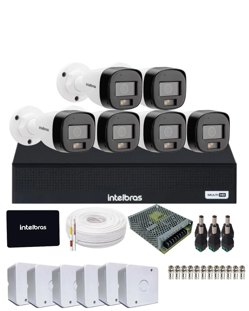 Kit 6 Câmeras Intelbras Vhd 3220 B Full Color Com Áudio Dvr Mhdx 1108-c Com SSD 512gb.