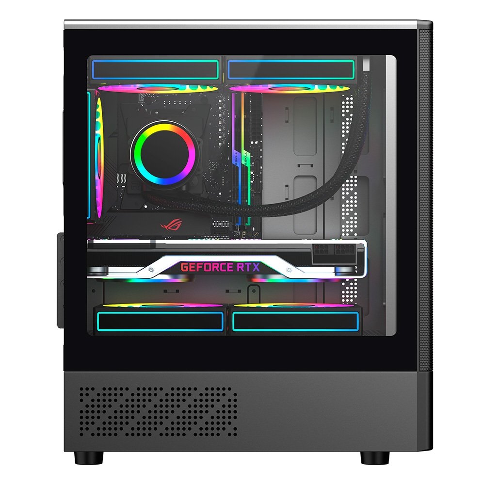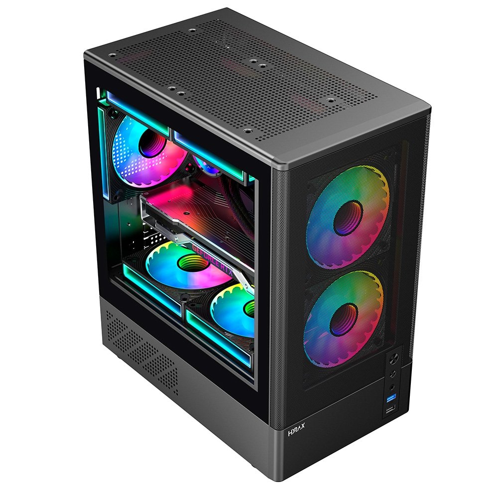 O Gabinete Gamer Hyrax Tower HGB205 combina um design moderno com uma construção robusta, sendo a escolha perfeita para montar um setup gamer equilibrado em desempenho, estilo e eficiência. Com uma elegante lateral em vidro temperado, ele permite exibir todos os seus componentes internos e a iluminação RGB com total clareza. O painel frontal em malha de aço não só garante maior durabilidade, mas também contribui para um visual sofisticado e resistente.