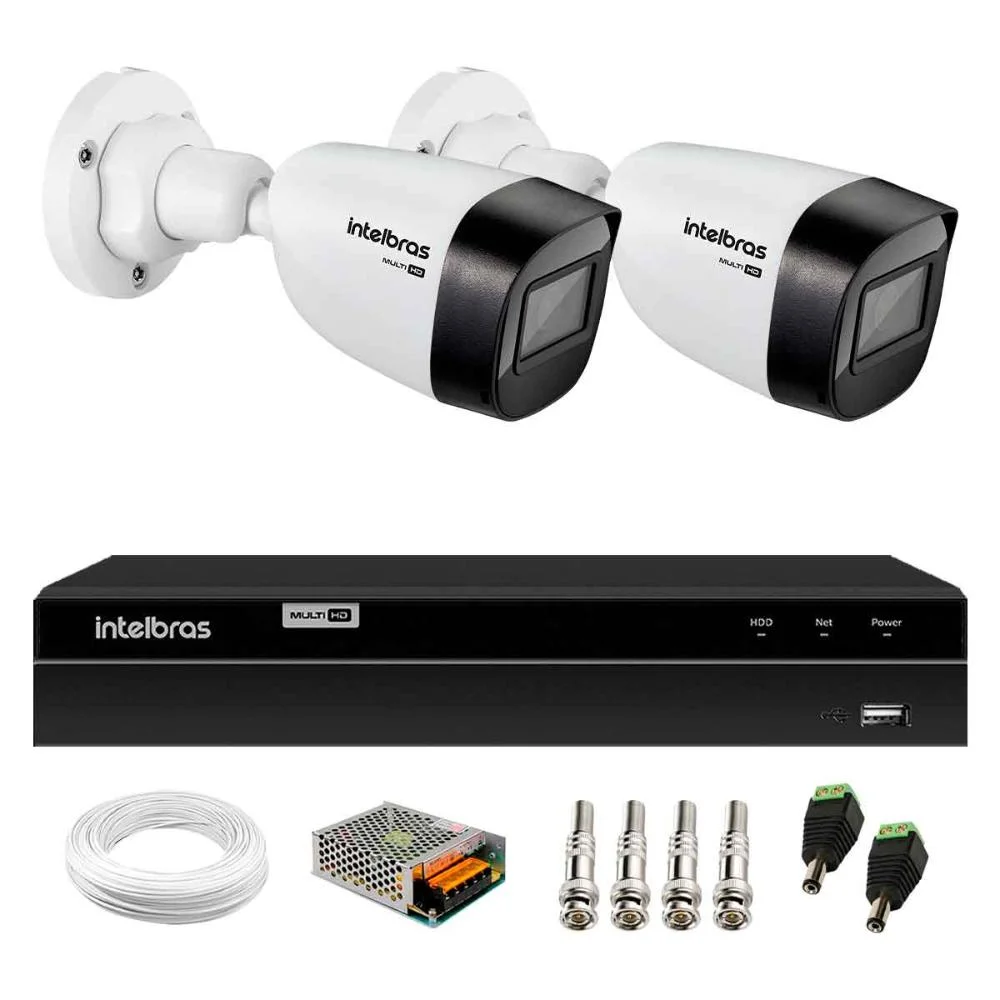 Kit 2 Câmeras Intelbras Vhd 1130 B Hd 720p Visão Noturna 30m Ip67 + Dvr Intelbras Mhdx 1204 4 Canais