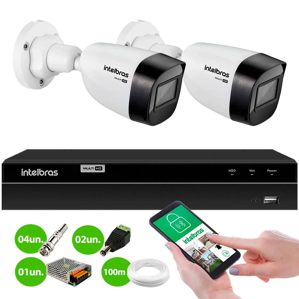 Kit 2 câmeras intelbras vhd 1130 b hd 720p com lente 2.8mm visão noturna 30m resistente à chuva ip67 + dvr intelbras mhdx 1304 4 canais
