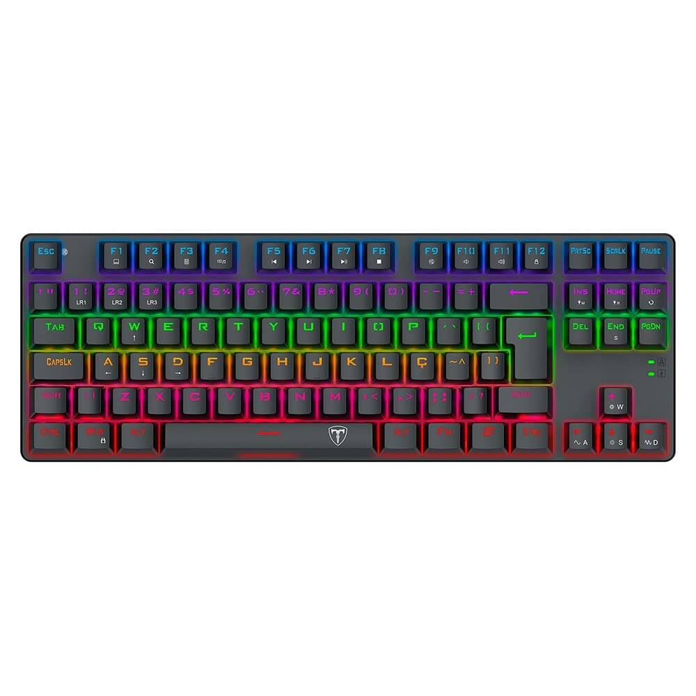 Mergulhe na atmosfera gamer com a deslumbrante iluminação RGB do T-Dagger Bora TKL. Personalize seu teclado com milhões de cores e diversos efeitos luminosos, criando um visual único que complementa seu setup e reflete seu estilo. A conexão USB assegura uma ligação estável e confiável, sem atrasos, essencial para a performance em jogos competitivos. O layout ABNT2 garante total familiaridade para o público brasileiro, com a tecla "Ç" e acentuação.