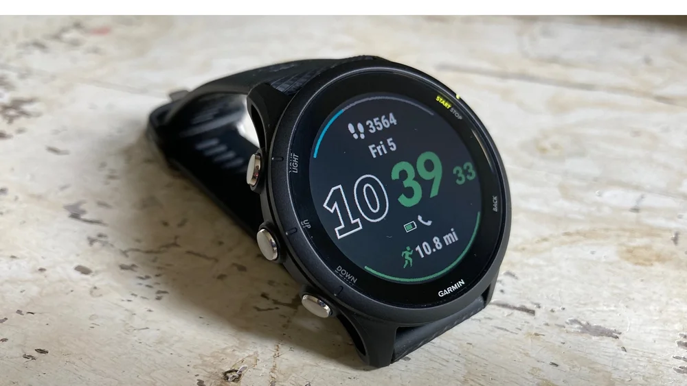 (QUASE) LEVE COMO UMA PENA: Com seu design elegante e peso de 48 gramas, você quase esquecerá que está usando o Forerunner 255 - mesmo quando estiver dormindo.