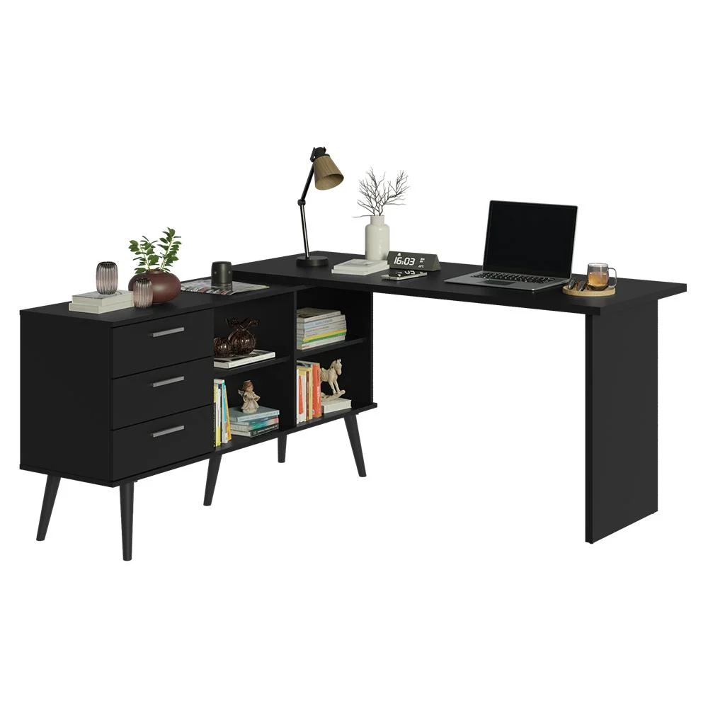 Mesa De Estudos Em L 3 Gavetas Preto Lisboa Madesa