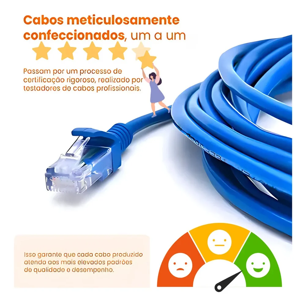 Ideal para montar ou expandir redes locais (lan), o cabo de rede cat5e rj45 utp oferece excelente desempenho em transferências de dados. Suporta velocidades de até 1000 mbps (gigabit ethernet), sendo perfeito para computadores, notebooks, roteadores, modens, switches, impressoras em rede e muito mais.