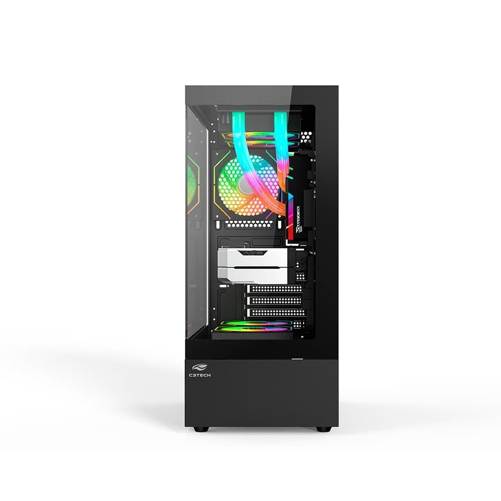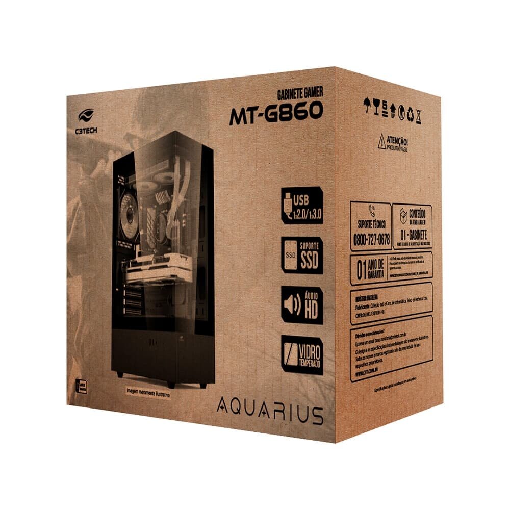 Gabinete Gamer C3Tech Aquarius, Mid Tower, Lateral em Vidro, Sem FANs, Preto - MT-G860BK