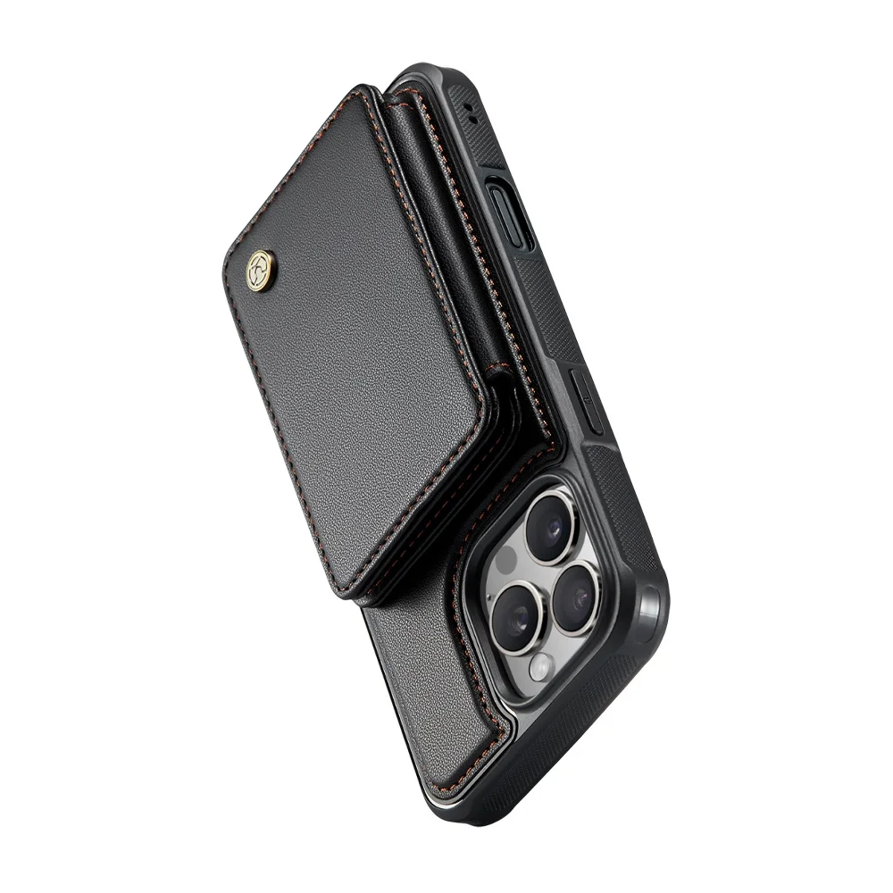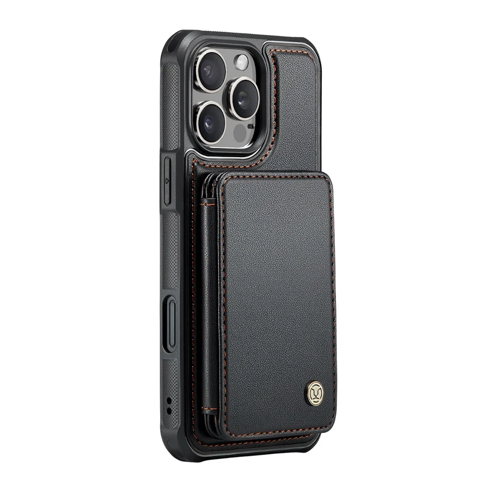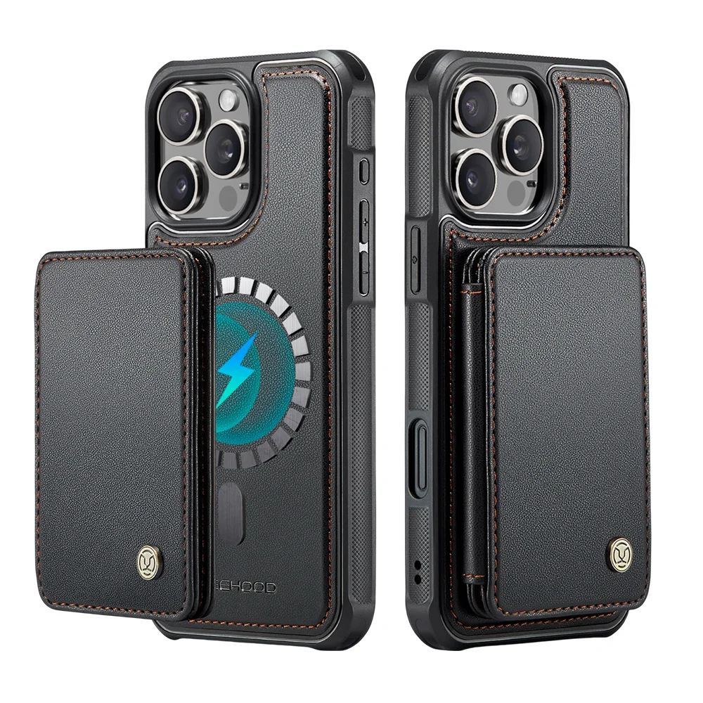 Capa tipo carteira jeehood compatível com iphone 16 pro max 6,9" preto, suporte para cartões, bloqueio rfid, fecho magnético duplo, proteção completa