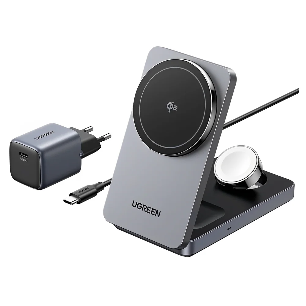 Combo 3 in 1 ugreen carregador magflow certificação qi2, carregador usb-c 30w, cabo usb-c para usb-c, proteção inteligente, design compacto e leve