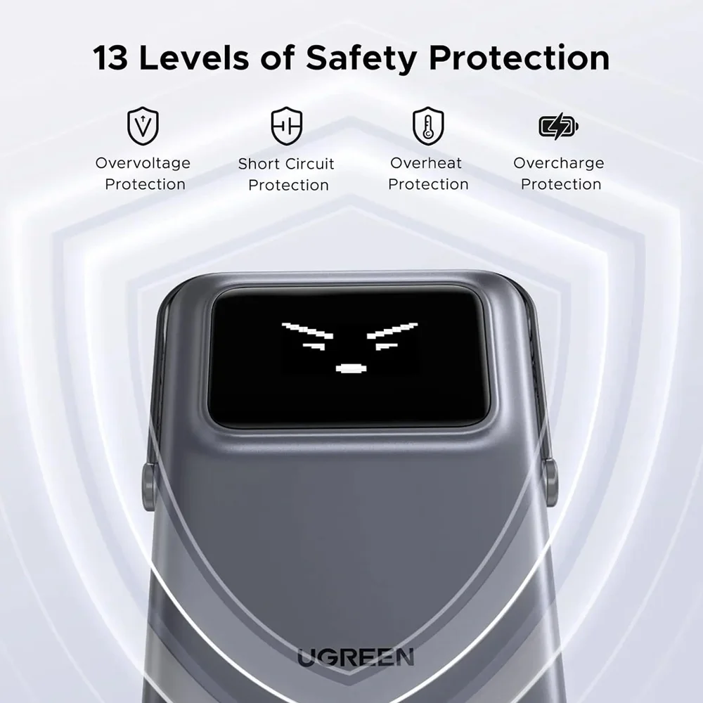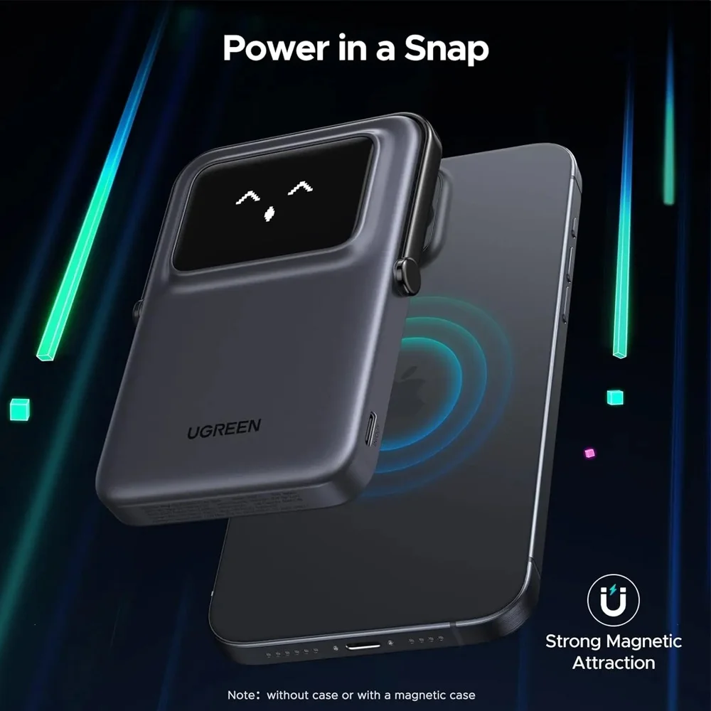 Power bank magnética ugreen uno 5000mah preto, compatibilidade magsafe, suporte protocolo mpp, entrada/saída usb-c 20w, carregamento sem fio 7,5w, tela tft e proteções avançadas - 35605b