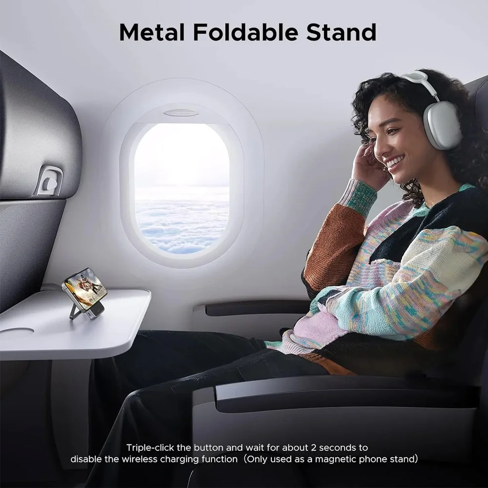 3. O carregamento wireless opera com potência máxima de 7,5w, utilizando força magnética de 10n para assegurar alinhamento estável entre o power bank e o dispositivo receptor, prevenindo perdas de energia e desconexões durante o uso.