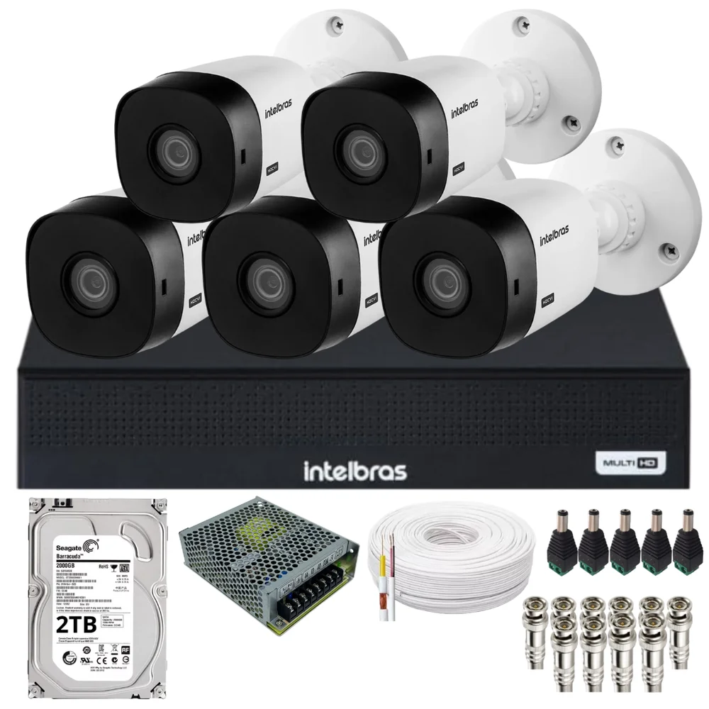 Kit Cftv 5 Câmeras Alta Qualidade Intelbras Full Hd 1220b Dvr Intelbras 08 Canais 1108-c C/hd.