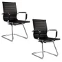 2x Cadeira Interlocutor Secretária Pés Fixos Esteirinha Preta - Par Preto