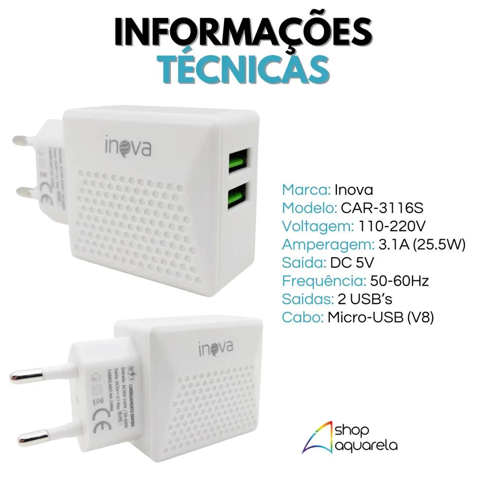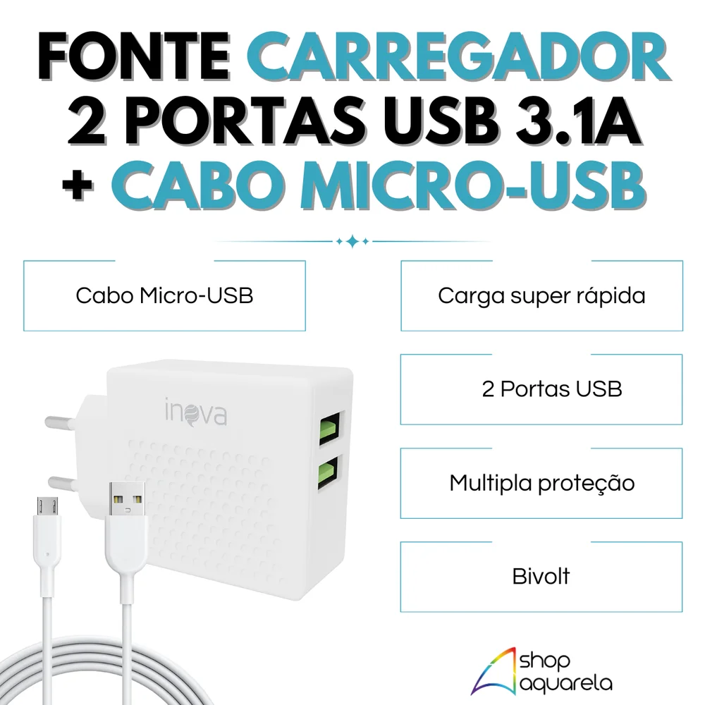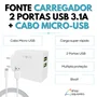 Carregador Fonte Turbo 3.1a 2 Usb Com Cabo Micro-usb V8