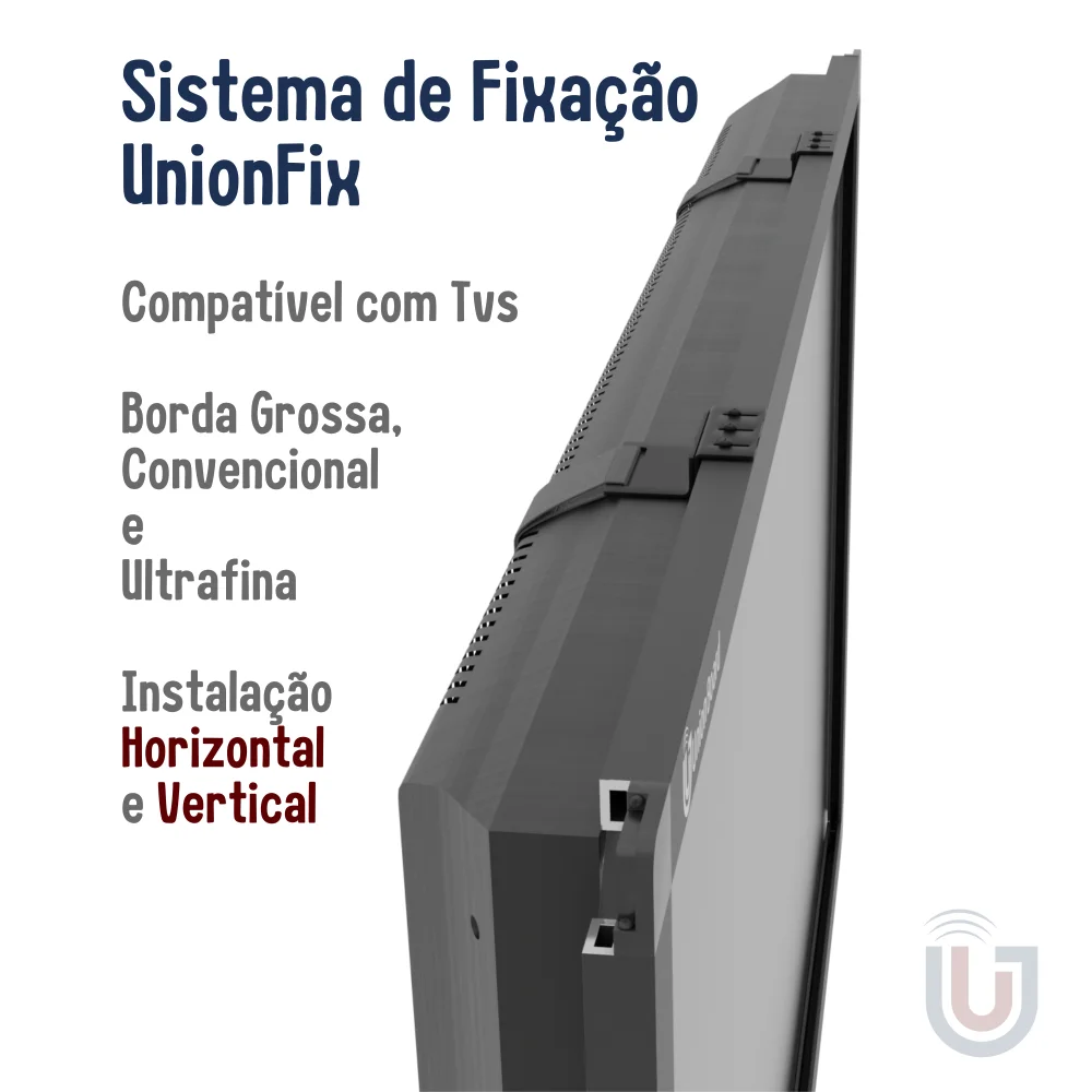 - Design e Instalação: Design discreto com sistema UnionFix para instalação fácil e segura em TVs de tela plana, com ou sem borda
