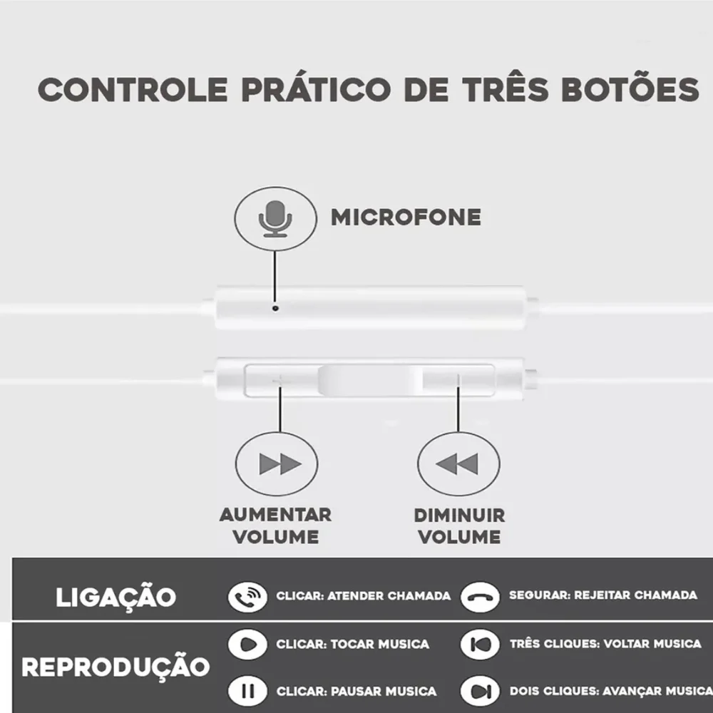 - Funcionalidades Especiais: Isolamento acústico e controle de volume no cabo para experiência imersiva