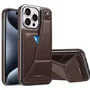 Capa Case De Couro Europeu Marrom Para Iphone 15 Pro Carteira