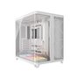 A construção do gabinete destaca-se pelo exterior de vidro panorâmico curvo, que envolve tanto a frente quanto a traseira do chassi. Essa característica proporciona uma visão ininterrupta e impressionante do hardware interno, transformando seu PC em uma verdadeira vitrine tecnológica que é tão bonita quanto potente.