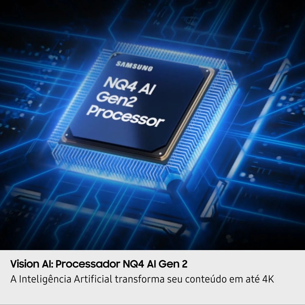 Samsung vision ai tv 75” neo qled 4k qn85f 2025, mini led, processador com ai, controle por gestos, modo ai, painel até 144hz, dolby atmos®, 7 anos de atualização, art store, alexa integradacada detalhe ganha vida com o poder do mini led mini leds samsung a imagem ganha mais detalhes com 40 mini leds que substituem cada led convencional, entregando brilho mais intenso, contraste profundo e cores mais vibrantes.comande a sua tv através de movimentos vision ai: controle por gestos controle sua tv por meio de gestos usando um relógio galaxy watch. Mova o cursor, selecione aplicativos e realize outras ações ou também dê comandos pelo celular, por meio do aplicativo smartthings.a ai aprimora como você assiste a um conteúdo vision ai: personalização com o modo ai o modo ai personaliza o conteúdo que você assiste, analisando e ajustando o som e as configurações de imagem conforme preferências pré-definidas por você mesmo.aproveitamento em qualquer conteúdo com a conversão hdr vision ai: imagem otimizada com inteligência artificial mesmo os conteúdos mais simples ganham cara nova, transformando o conteúdo sdr para hdr 4k, ajustando o brilho e as cores para uma melhor experiência.transforme a sua casa em uma festa vision ai: modo karaokê tenha acesso a mais de cem mil músicas, desde clássicos até lançamentos, para transformar a sua casa em um karaokê, utilizando o celular como microfone, por meio do aplicativo stingray music.a inteligência artificial transforma seu conteúdo em até 4k vision ai: processador nq4 ai gen 2o processador exclusivo da samsung analisa e melhora brilho, cor e textura, utilizando como base milhares de referências de imagens. Tudo isso graças às 20 redes neurais, que elevam qualquer conteúdo a uma experiência em até 4k.a sua ai tv sempre atualizada sua tv com atualização garantida por 7 anosacesse seus conteúdos e apps de streaming, sugeridos conforme você usa sua tv, e, melhor ainda, com a certeza de que você terá uma tv com sistema operacional atualizado através do sistema operacional one ui tizenexperiência de som imersiva e otimizada dolby atmos® com som em movimento, sincronia sonora e controle de som adaptativo pro fique imerso no áudio dos seus conteúdos, como se estivesse dentro da cena, por meio do dolby atmos®. A tv analisa automaticamente os tipos de cena e calibra o som para uma experiência sonora equilibrada. Ao utilizar a tv com uma soundbar samsung, o som de ambos funcionará em sincronia: o q-symphony.obras de arte do mundo todo disponíveis na sua tv art store assine a art store, galeria online, e tenha à disposição mais de 3.000 pinturas e fotografias famosas dos principais artistas e museus do mundo. De clássicos aclamados a obras-primas modernas, desfrute dessa riqueza de opções para criar sua própria galeria em casa, do seu jeito.comande sua tv por voz assistentes de voz alexa e bixby integradas acesse apps, mude de canal ou altere o volume. A tv traz bixby e alexa integradas para que você escolha o seu serviço de voz preferido.