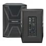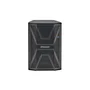 seu design é reforçado por um gabinete em mdf de alta resistência, com tela metálica frontal com pintura eletrostática, garantindo durabilidade e proteção aos componentes internos. O modelo conta com duas entradas paralelas tipo p10 (1/4"), permitindo ligação em cascata com outras caixas.