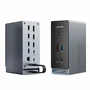 - Recursos Especiais: 16-em-1 com HDMI (4K60Hz e 4K30Hz), DisplayPort (4K60Hz), USB-C 3.2 (10Gbps), USB-A 3.2 (10Gbps), USB 3.0 (5Gbps), USB 2.0 (480Mbps), SD/TF 3.0, LAN (1000Mbps), USB-C (100W) e áudio 3,5mm
