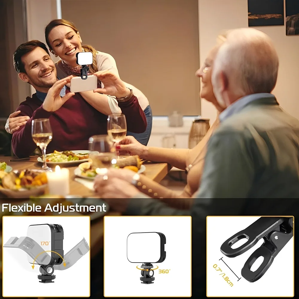 5. Versatilidade de montagem e fixação: a luz de vídeo vem com um parafuso de 1/4" e um adaptador de sapata fria, permitindo fixá-la em câmeras, tripés, microfones e outros suportes. Seu grampo é feito de material plástico de alta qualidade, sendo compatível com uma ampla gama de dispositivos, como celulares, tablets e laptops. Garantia 90 dias
