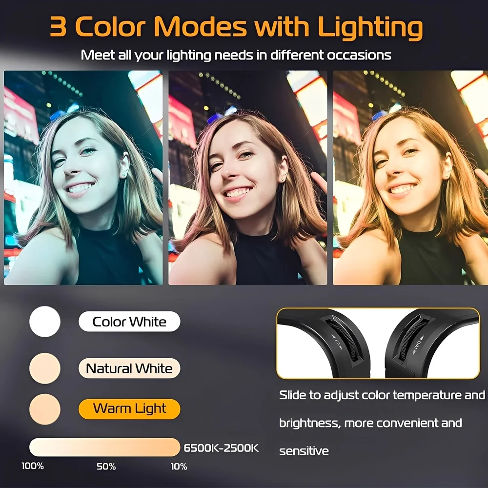 3. Brilho regulável de 0% a 100%: o brilho da luz pode ser ajustado conforme a sua preferência, com controle total sobre a intensidade de iluminação para garantir a iluminação perfeita em qualquer situação, desde gravações íntimas a transmissões ao vivo.