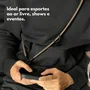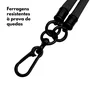Resumo gerado por IA- Conectividade e Recursos: Cordão universal em poliéster trançado, adaptável a qualquer capa, com mosquetões giratórios para uso versátil.