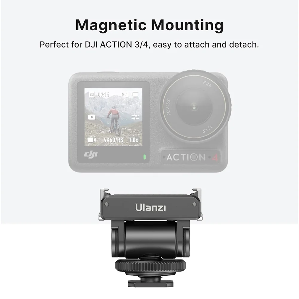 Adaptador ulanzi ca22 montagem magnética p/ sapata fria, inclinação 160°, rosca 1/4"-20, compatível dji osmo action 3/4 e pocket 3, alumínio, 700g de carga