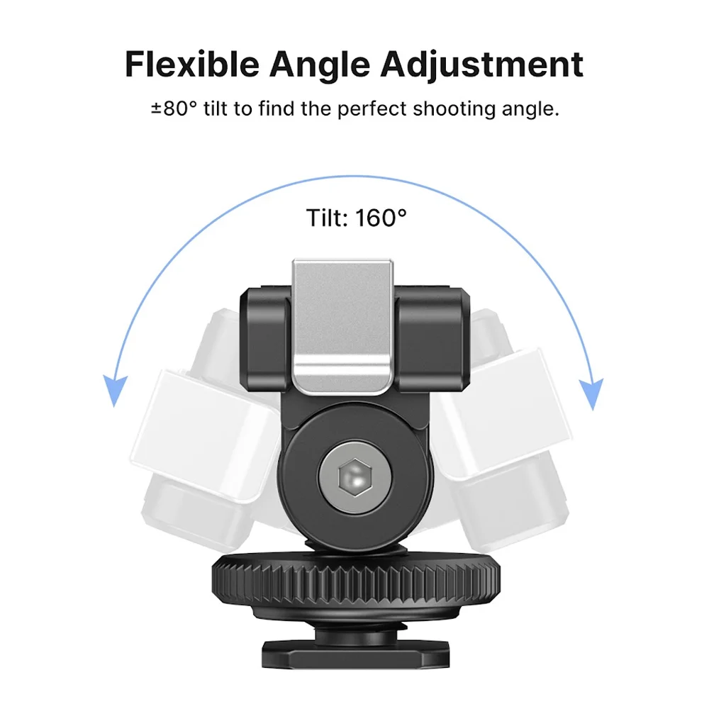 2. Oferece inclinação total de 160° (±80°) para posicionamento preciso da câmera, possibilitando capturas em diferentes ângulos com estabilidade e praticidade. A base magnética integrada aumenta a segurança na fixação com câmeras compatíveis.