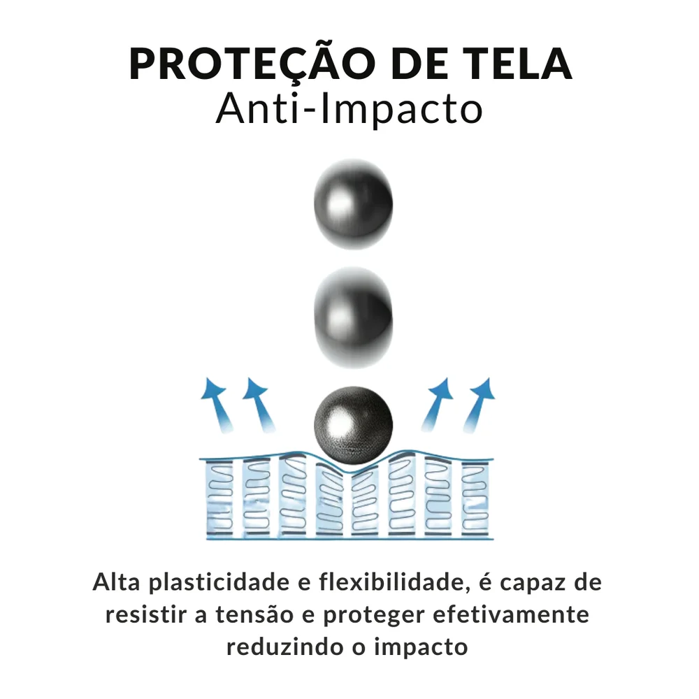 - Proteção: Material hydrogel flexível com resistência a impactos