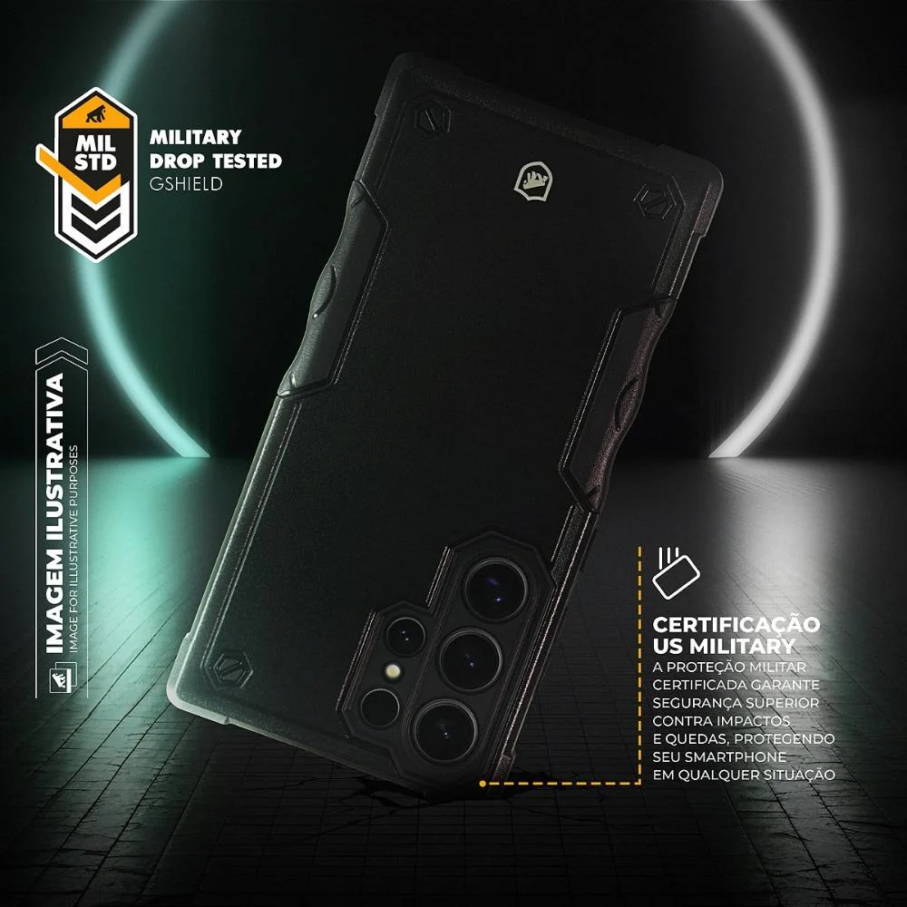 com uma estrutura robusta, a capa armorgear da gshield é construída para ser resistente. Os materiais duráveis absorvem choques, proporcionando uma barreira confiável contra danos acidentais do dia a dia. Além disso, a capa possui design lateral antiderrapante, garantindo uma aderência firme em suas mãos.