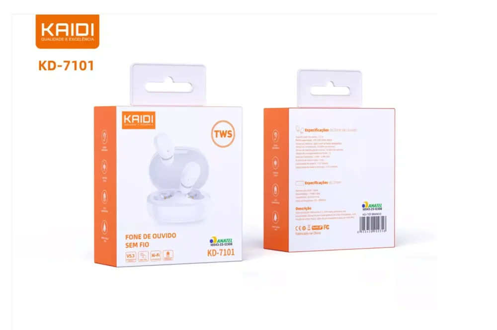 Kaidi Fones De Ouvido Branco Bluetooth Kd-7101 Versão 5.3 Baixa Latência Alta Estabilidade Resistente À Água Ipx4 Com Função Smart Touch