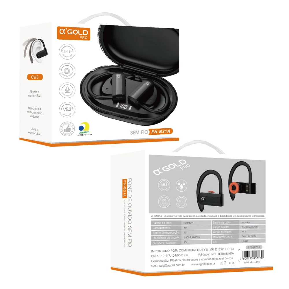 Fone De Ouvido Sport Orelhas Penduradas Bluetooth 15h Bateria Ipx5 Esportivo 5.3 A'gold Fn-b21a