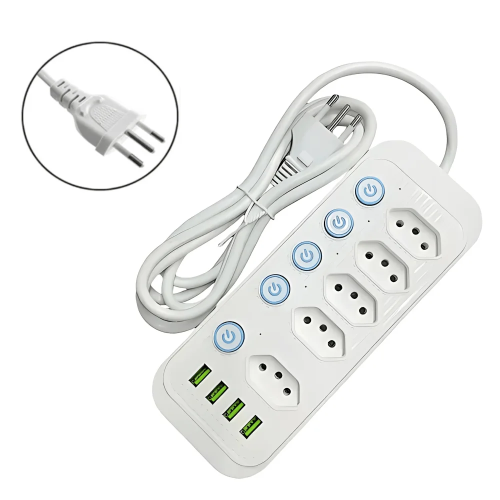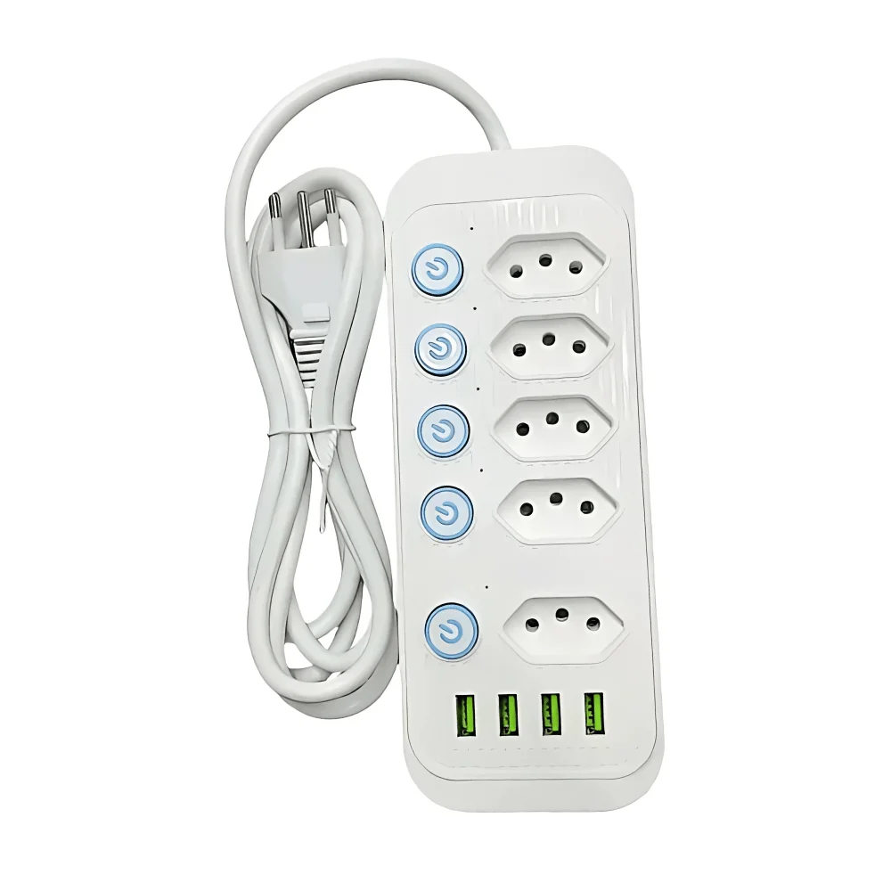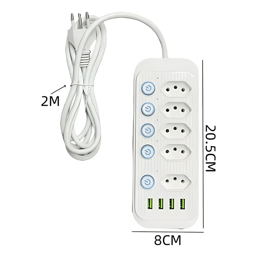 - Conectividade: 5 tomadas padrão Brasil e 4 portas USB para compatibilidade e carregamento simultâneo
