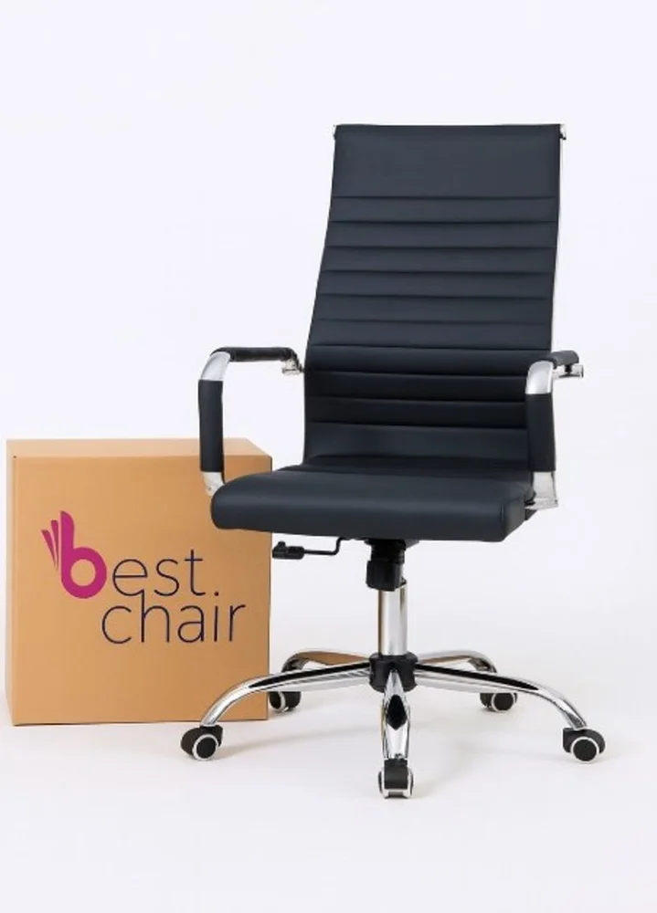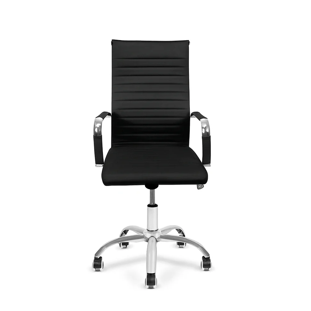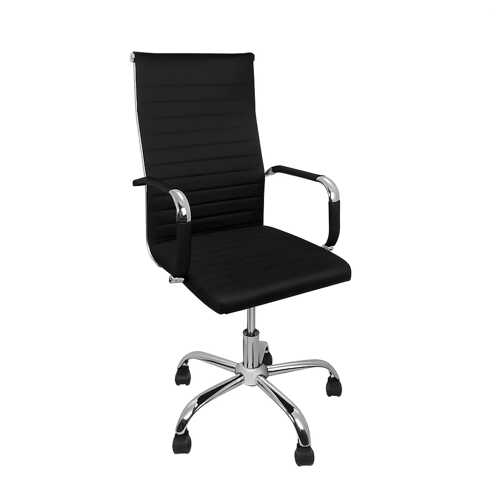 Cadeira Presidente Giratória Esteirinha Charles Eames Estofada Preta Preto