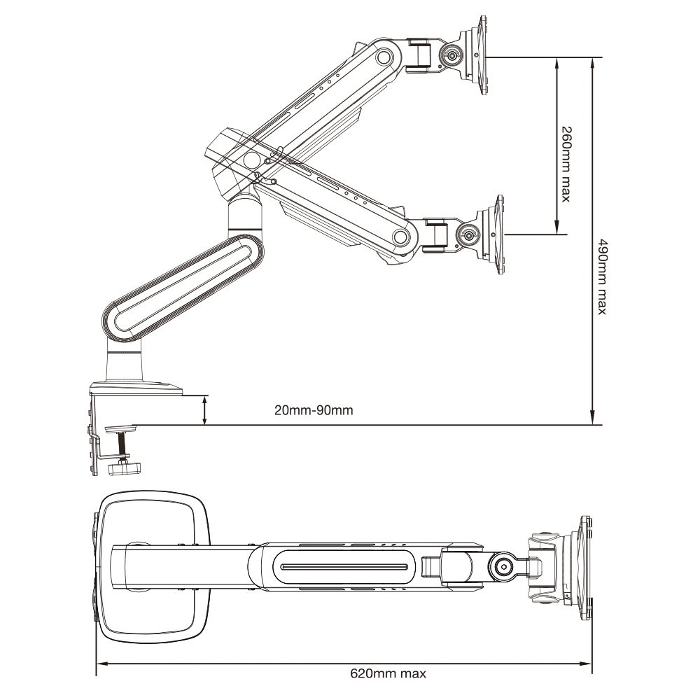 O kit de acessórios que acompanha o suporte oferece duas formas de fixação: tipo morsa (para bordas de mesas) ou serra copo (para furação no tampo da mesa), adaptando-se a diferentes tipos de superfícies e preferências de instalação. Com funções de estender, girar e inclinar, este suporte oferece total controle sobre a posição do seu monitor, melhorando significativamente sua experiência de visualização em qualquer cenário.
