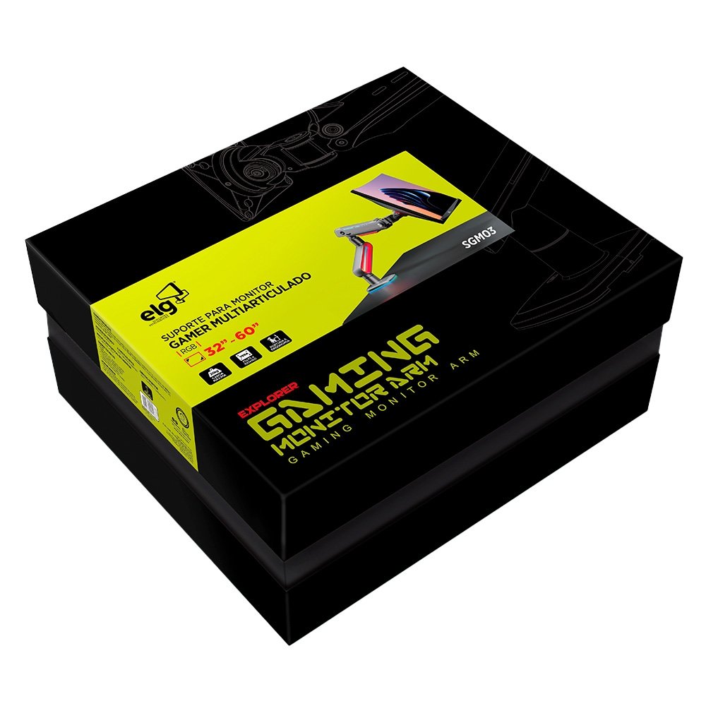 Suporte de Mesa Articulado Gamer para Monitor de 32" a 60" ELG, com Pistão a Gás, VESA, RGB, Vermelho e Preto - SGM03