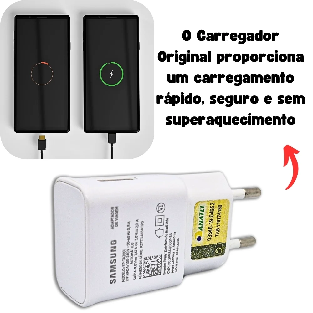 Tenha a experiência de um carregamento rápido e ideal para seu smartphone. O carregador original samsung fast charging oferece um carregamento de até 15w para os modelos compatíveis s8, s9, s10, a5 (2017), a7(2017), a8, a11, a20, a20s, a30, a50, a51 e modelos futuros com esta tecnologia.