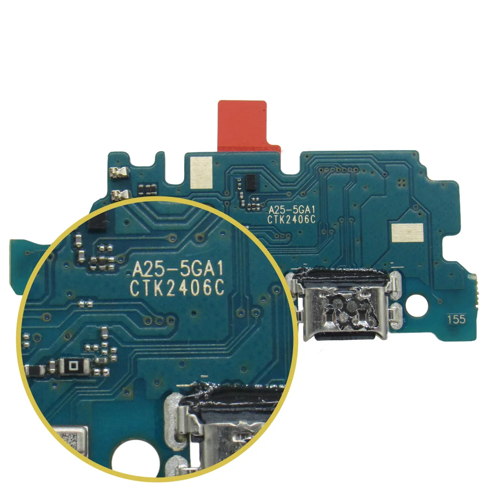 Resumo gerado por IA- Conectividade e Recursos: Componente de substituição para restabelecer carregamento e transferência de dados via USB-C em Galaxy A25 5G (modelos SM-A256E/B/N).