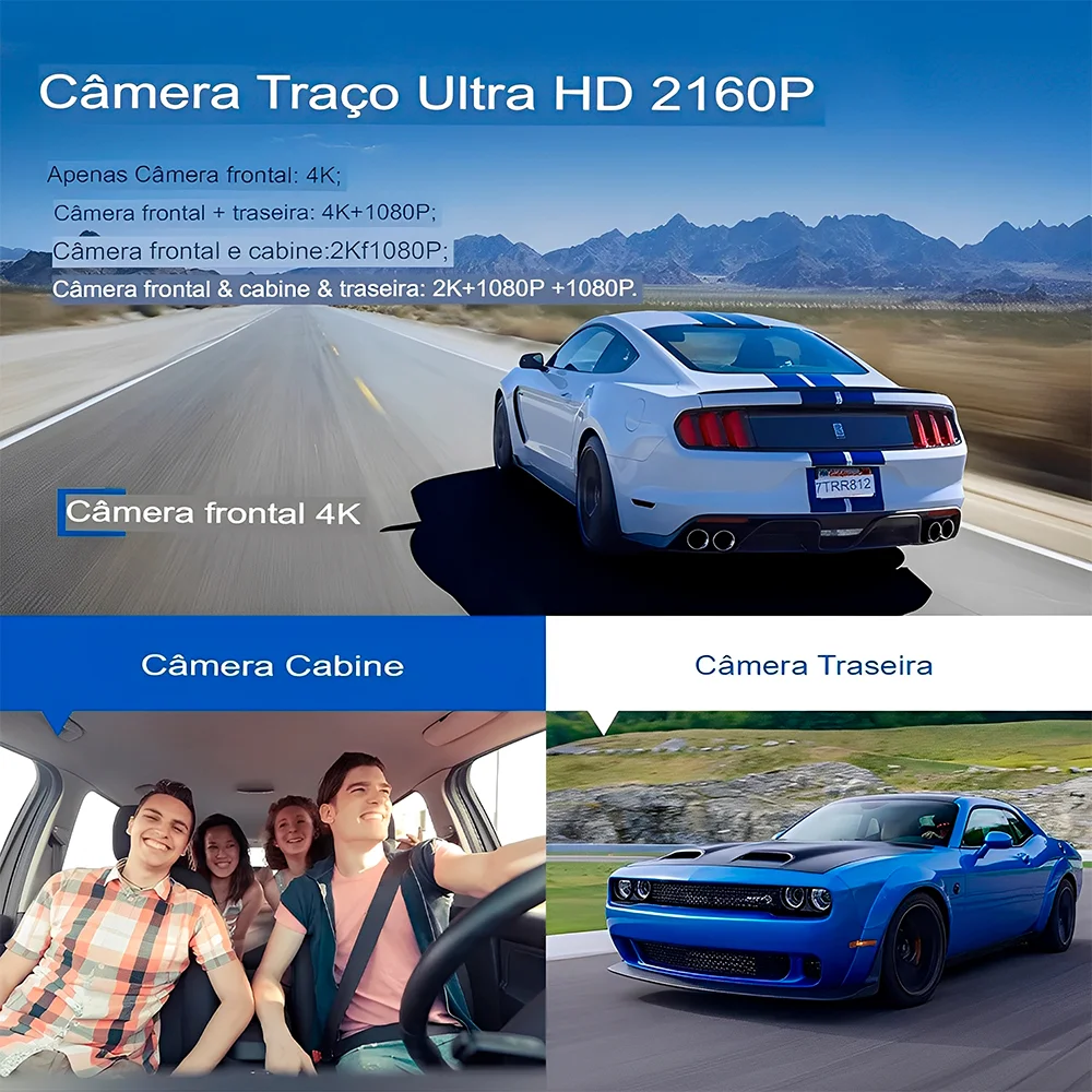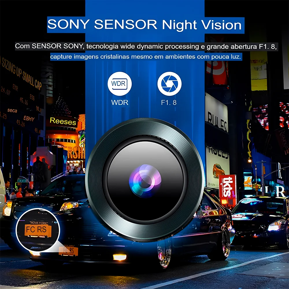 Conectividade e Recursos: Wi-Fi 5G integrado, GPS para rastreamento de rotas, modo de estacionamento 24h, cartão de 64GB incluso