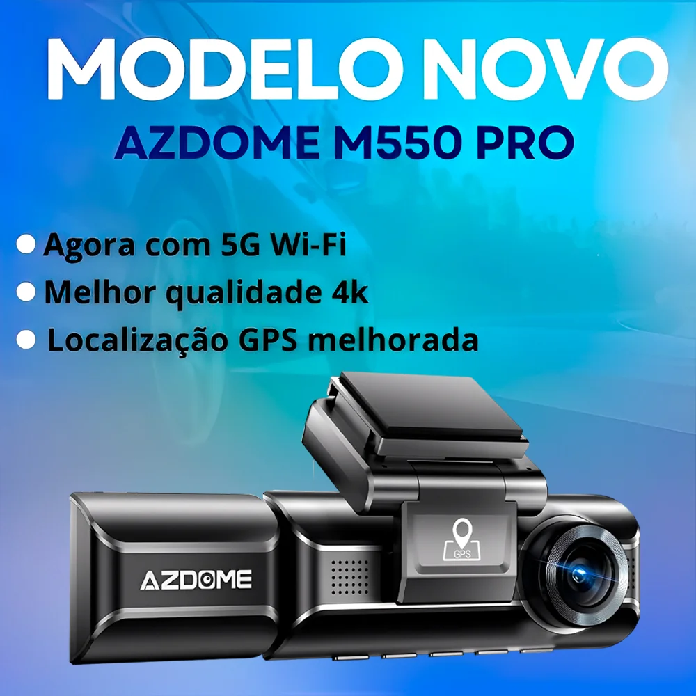1. O que é a azdome m550 pro 3 canais? a azdome m550 pro é uma câmera de painel (dashcam) avançada com gravação 4k na frente, 1080p na traseira e 1080p interna, proporcionando cobertura total do veículo. Equipado com wi-fi 5g, gps integrado e tela de 3,18", é ideal para quem busca segurança e praticidade.