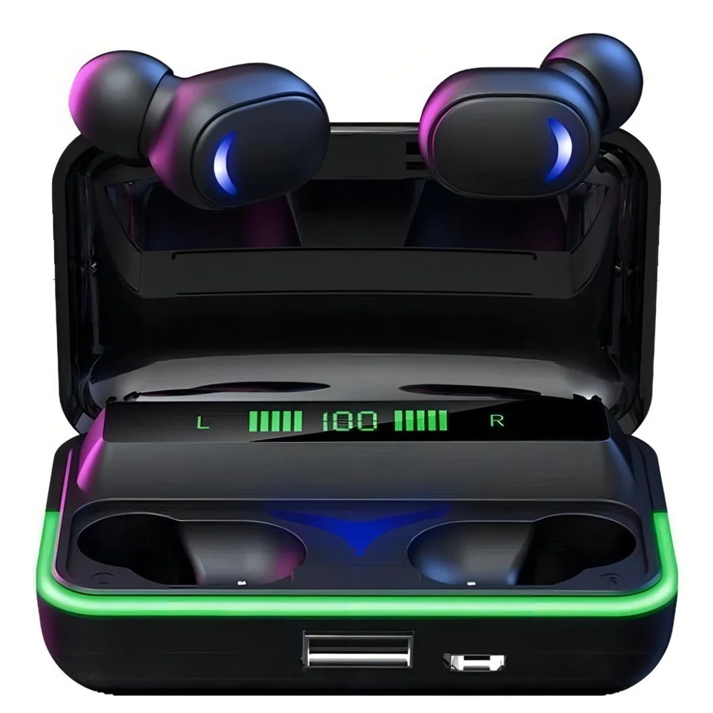 Fone De Ouvido Preto Tws Controle Touch Com Case Carregador Power Bank