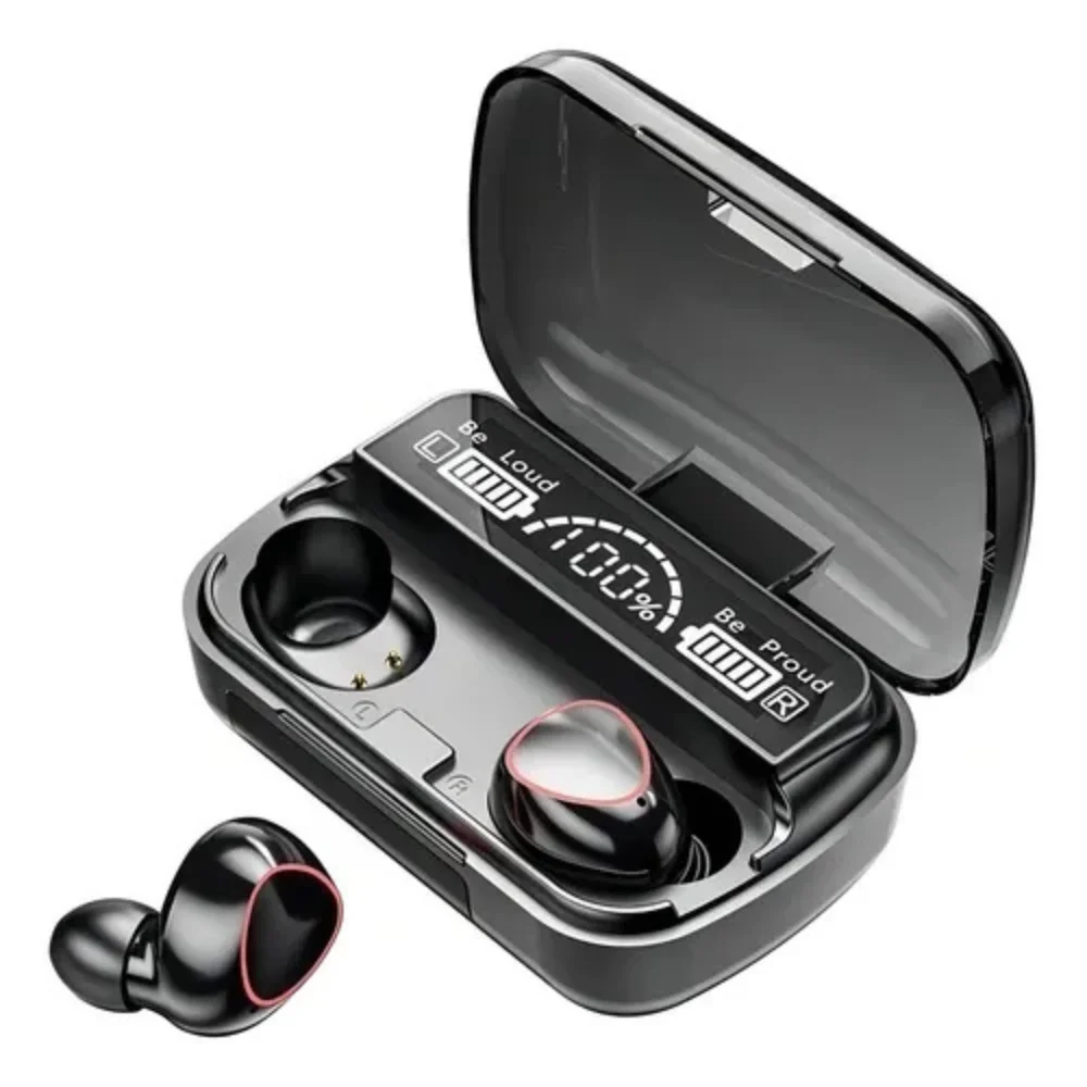 Fone Sem Fio Tws Preto Display LED Digital E Power Bank Portátil Integrado