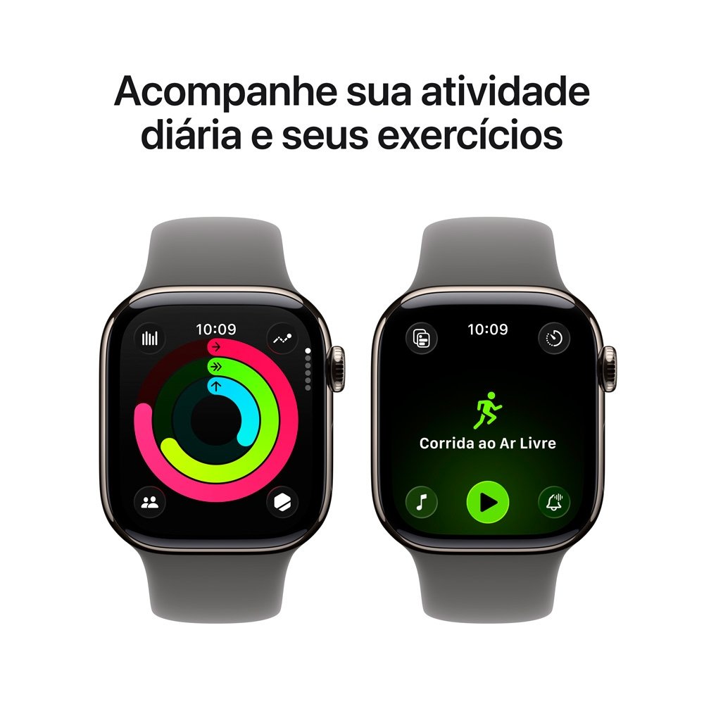 Apple Watch Series 11 GPS+Cellular, Caixa Natural de Titânio, Pulseira esportiva Tamanho M/G