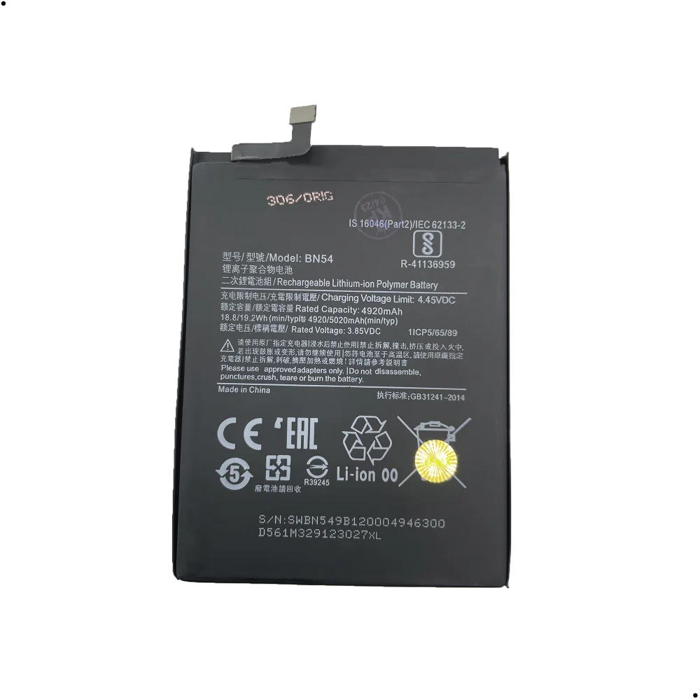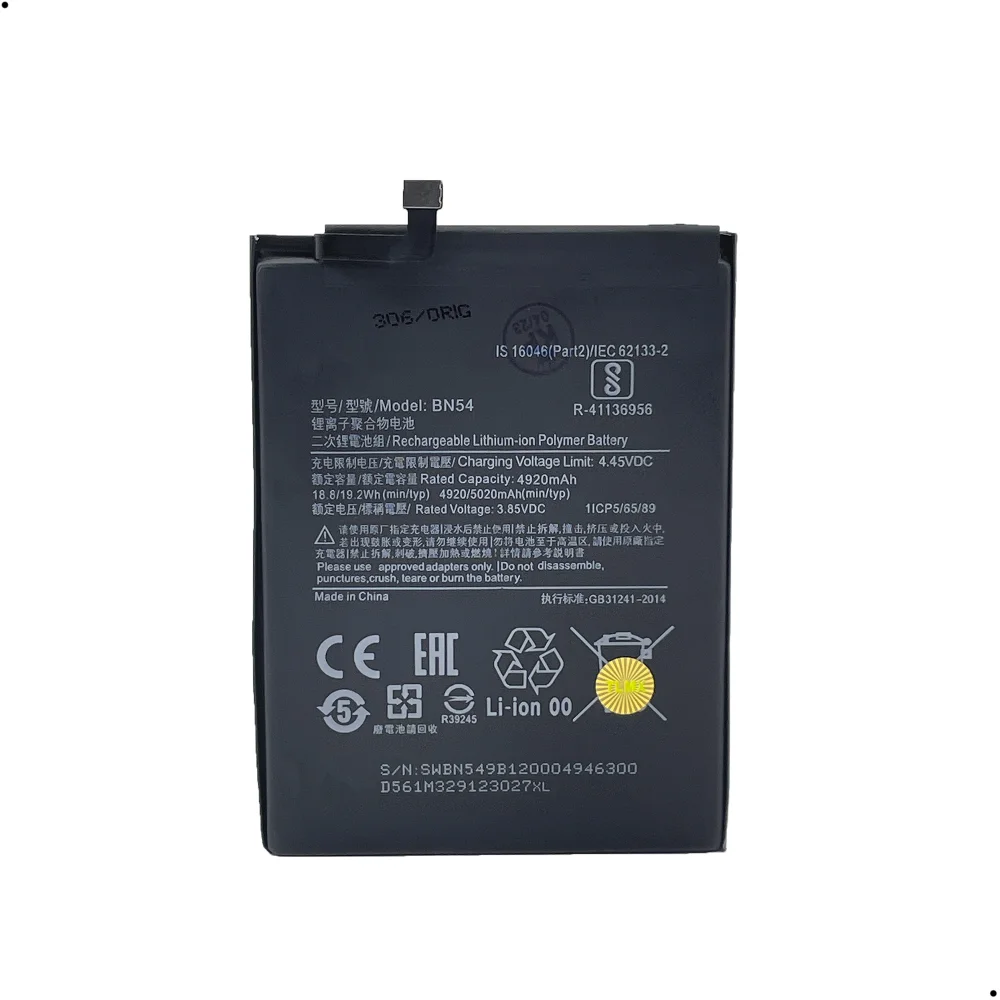 aplicação: note 9 (5g) / redm 10 x (4g) / 9 modelo: bn54 voltagem: 3.85v tensão de carga limitada: 4.4v capacidade: 4920 mah dimensões: 64,2 x 83,6 x 3,9 mm
