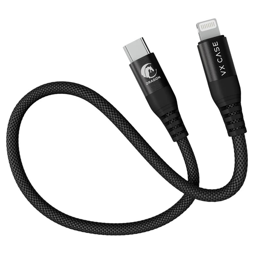 Mini Cabo Dragon Usb-c/lightning 30cm Vx Case Preto ( 1 Ano De Garantia)