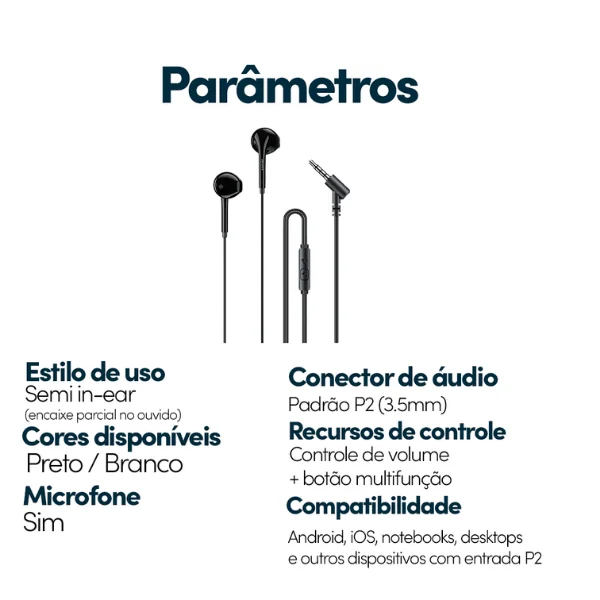 O design ergonômico garante encaixe confortável mesmo após longas horas de uso, enquanto o cabo reforçado em tpe proporciona maior resistência e durabilidade. Ideal para ouvir músicas, assistir vídeos, jogar ou se comunicar com praticidade.