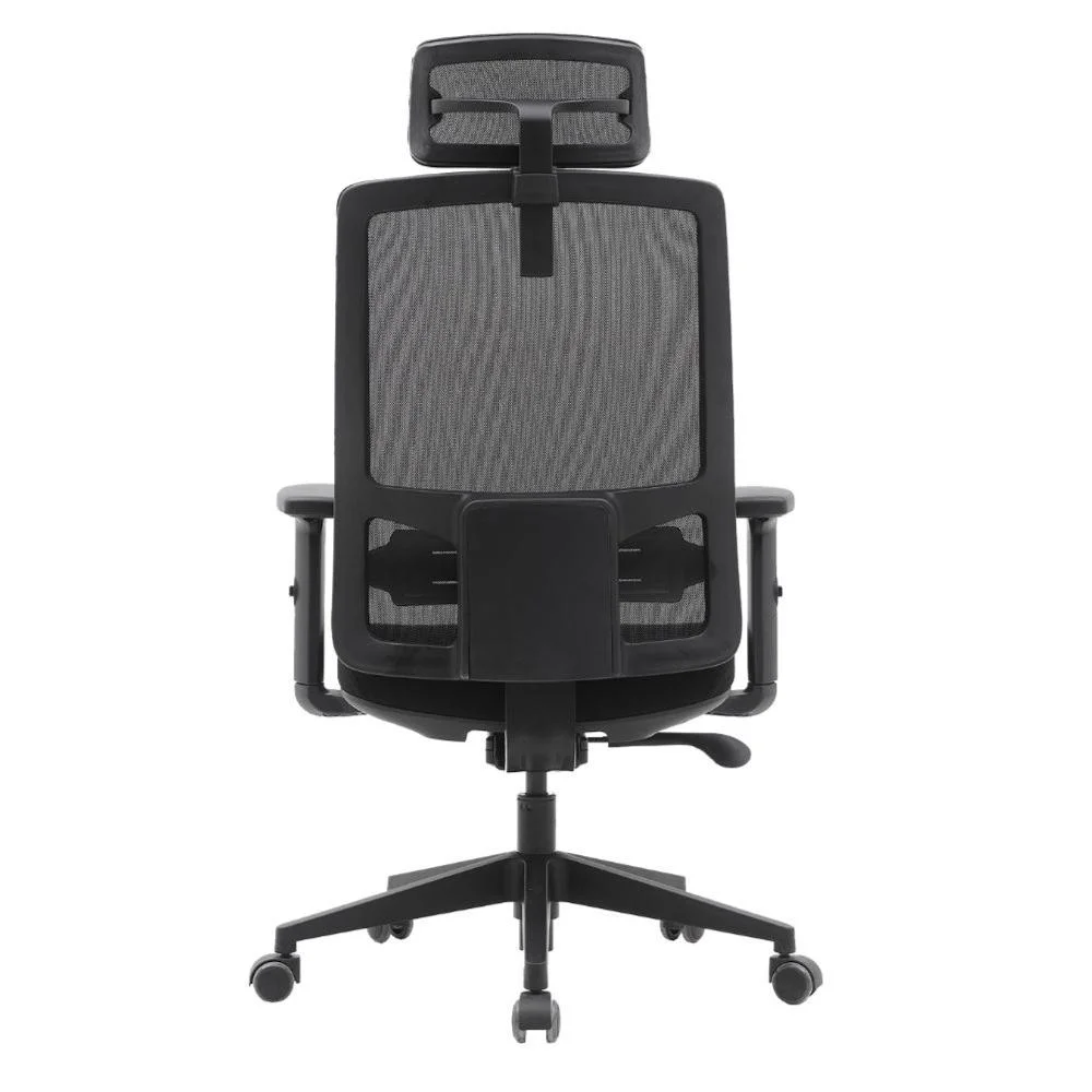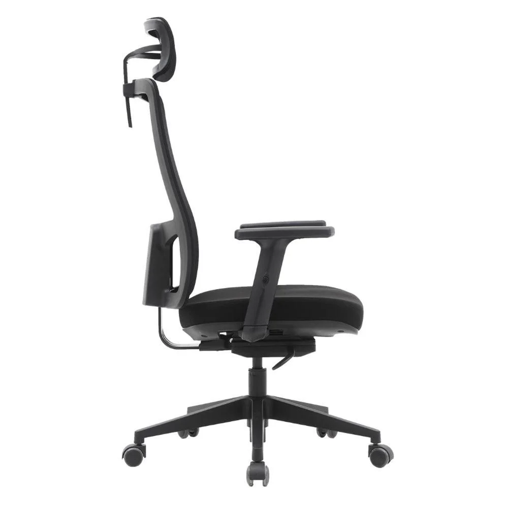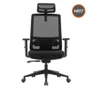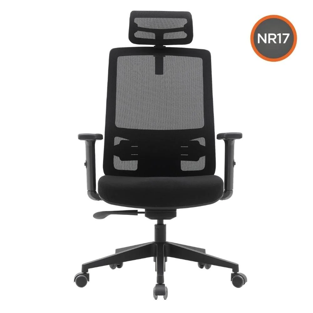 - Design e Ergonomia: Formato presidente com tela mesh para ventilação e apoio de cabeça, ideal para uso prolongado.