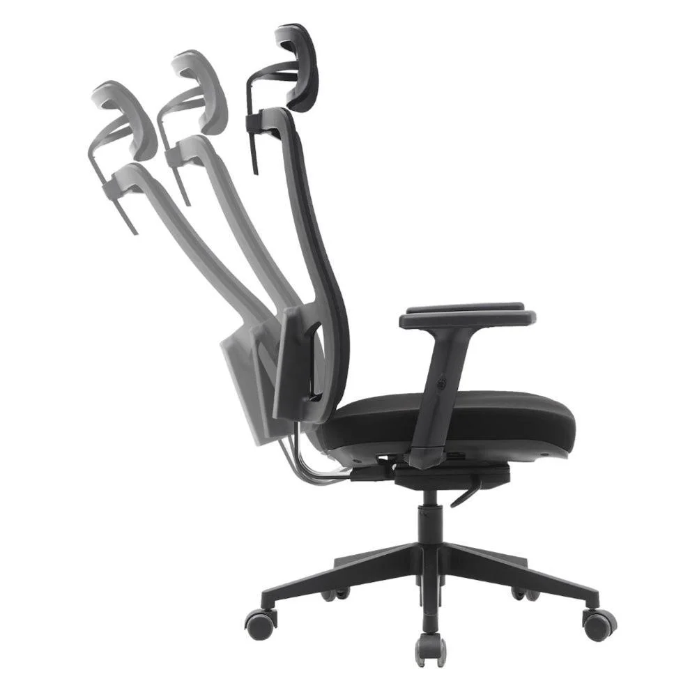Resumo gerado por IA- Tecnologia e Precisão: Mecanismo back system com ajuste de altura e apoio lombar, promovendo postura saudável.