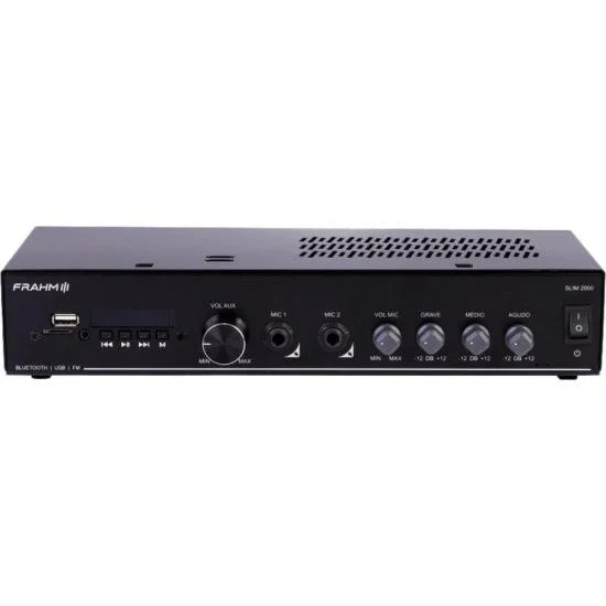 O amplificador slim 2000 g6 é a solução ideal para sonorização comercial, combinando confiabilidade, tecnologia e design moderno. Sexta geração da linha de amplificadores mais confiável do brasil, o slim 2000 g6 oferece desempenho sonoro superior, estabilidade eletrônica e interface intuitiva, atendendo perfeitamente a ambientes como restaurantes, lojas, supermercados, consultórios, clínicas e escritórios corporativos. com bluetooth 5.0, ele permite conexão sem fio rápida e estável, garantindo praticidade na reprodução de músicas ou anúncios em qualquer espaço. Seu design elegante com linhas curvas e acabamento refinado integra-se harmoniosamente em qualquer ambiente, unindo estética e funcionalidade. o slim 2000 g6 suporta caixas de som com impedância mínima de 2 ohms, possibilitando a instalação de até 4 caixas de 8 ohms em paralelo, mantendo excelente performance sonora. Operando em classe ab, o amplificador proporciona som limpo e equilibrado com mínima distorção, ideal para todos os níveis de volume. principais especificações técnicas: potência rms: 120w 2? tipo: amplificador mono classe ab número de vias: 3 (grave, médio, agudo) frequência de atuação: graves 100 hz | médios 1 khz | agudos 10 khz sensibilidade mic: 7 mvrms 1 khz sensibilidade aux: 260 mvrms 1 khz impedância mic: 2k2? | impedância aux: 39k? alimentação: bivolt automático (90?240v) consumo máximo: 170w | fusível: 3a peso: 1,3 kg | dimensões: 68 × 327 × 135 mm o slim 2000 g6 acompanha controle remoto, 2 pilhas aaa e manual do usuário, oferecendo praticidade desde a instalação até a operação diária. Combinando potência, confiabilidade e recursos modernos, este amplificador é a escolha perfeita para quem busca qualidade de som superior e facilidade de uso em ambientes comerciais.