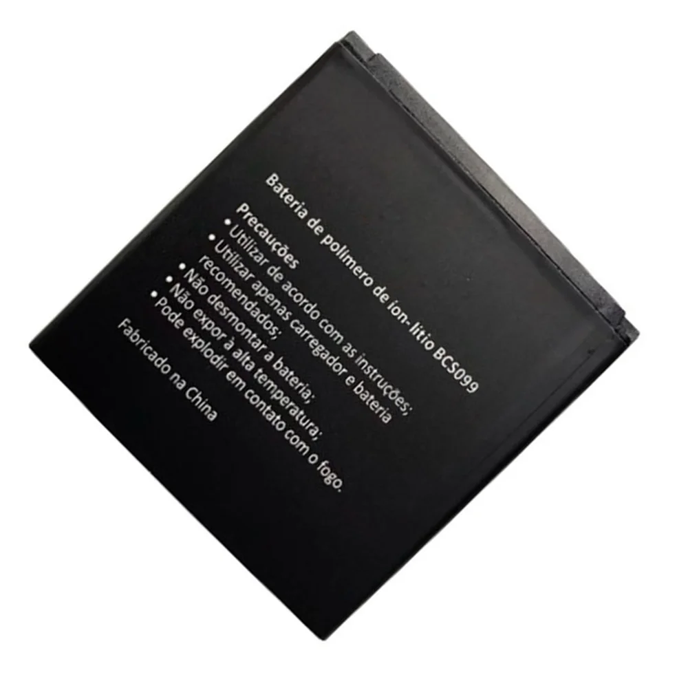 aplicação: p9099 modelo: bcs099 voltagem: 3.7v tensão de carga limitada: 4.4v capacidade: 1.400 mah dimensões: 53,5 x 56,9 x 4 mm